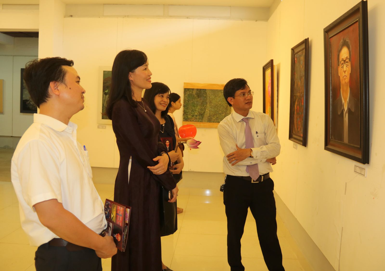 Triển lãm mỹ thuật thu hút gần 40 tác phẩm hội họa, điêu khắc của các họa sĩ, giảng viên với các chủ đề thể hiện tình yêu đất nước, yêu Đảng qua nhiều chất liệu: Acrylic, sơn dầu hay củi khô, thép (nghệ thuật sắp đặt)...