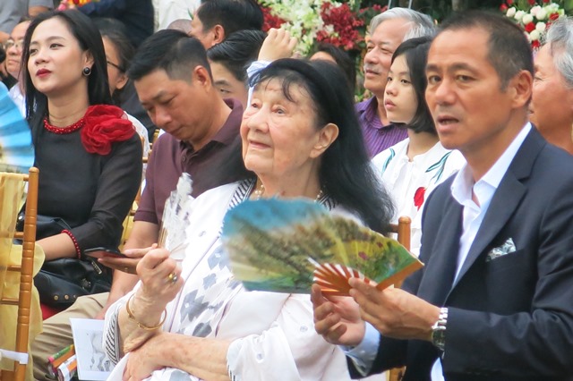 Dù đã ngoài 90 tuổi, bà Myshu LeBaDang, phu nhân của cố họa sĩ Lê Bá Đảng vẫn lặn lội từ Pháp về dự lễ khai trương