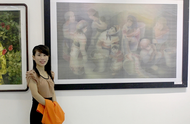 Lê Thị Hải bên tác phẩm Dừng chân ven đường