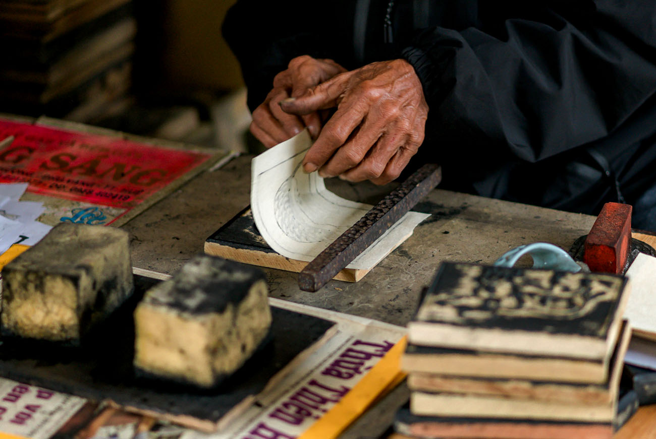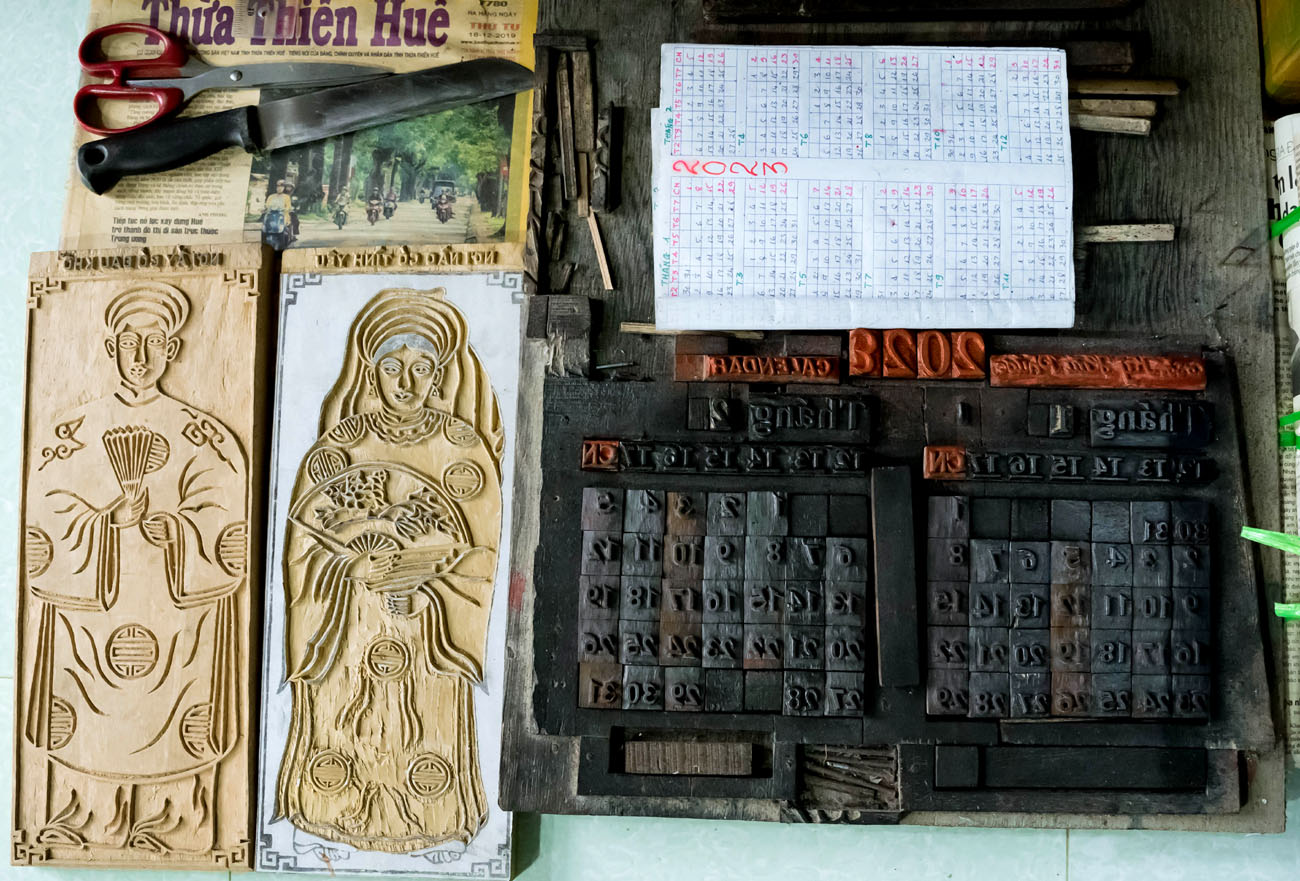 Khuôn in tháng ngày được làm từ gỗ cây mứt, vừa dễ tạo đường nét, ít bị hư