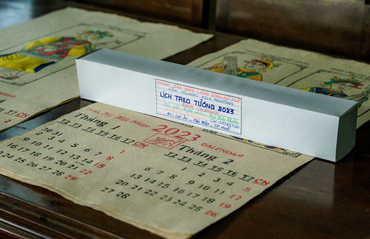 Có hai mẫu lịch: Trò chơi dân gian và lịch Bát âm (tranh về 8 loại nhạc cụ). Mỗi bộ lịch có giá 300 ngàn đồng, in, vẽ trong 2 ngày. Lịch từ tranh Bát âm được ưa chuộng và bán chạy nhất. Mỗi bộ lịch này có 6 tờ. Nhà nghiên cứu Nguyễn Xuân Hoa hỗ trợ tư vấn cho ông Phước xếp theo thứ tự tranh để làm lịch. Khi nhận được hộp lịch, khách sẽ đọc mẫu giấy hướng dẫn để biết cách treo theo thứ tự Bát âm cho phù hợp.