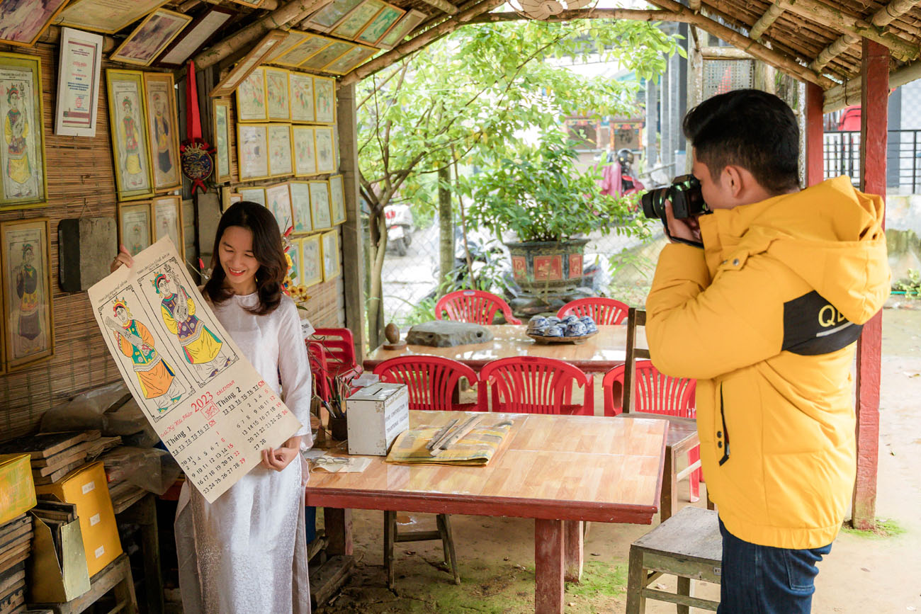 Trò chuyện về mẫu lịch với khách tour đến nhà