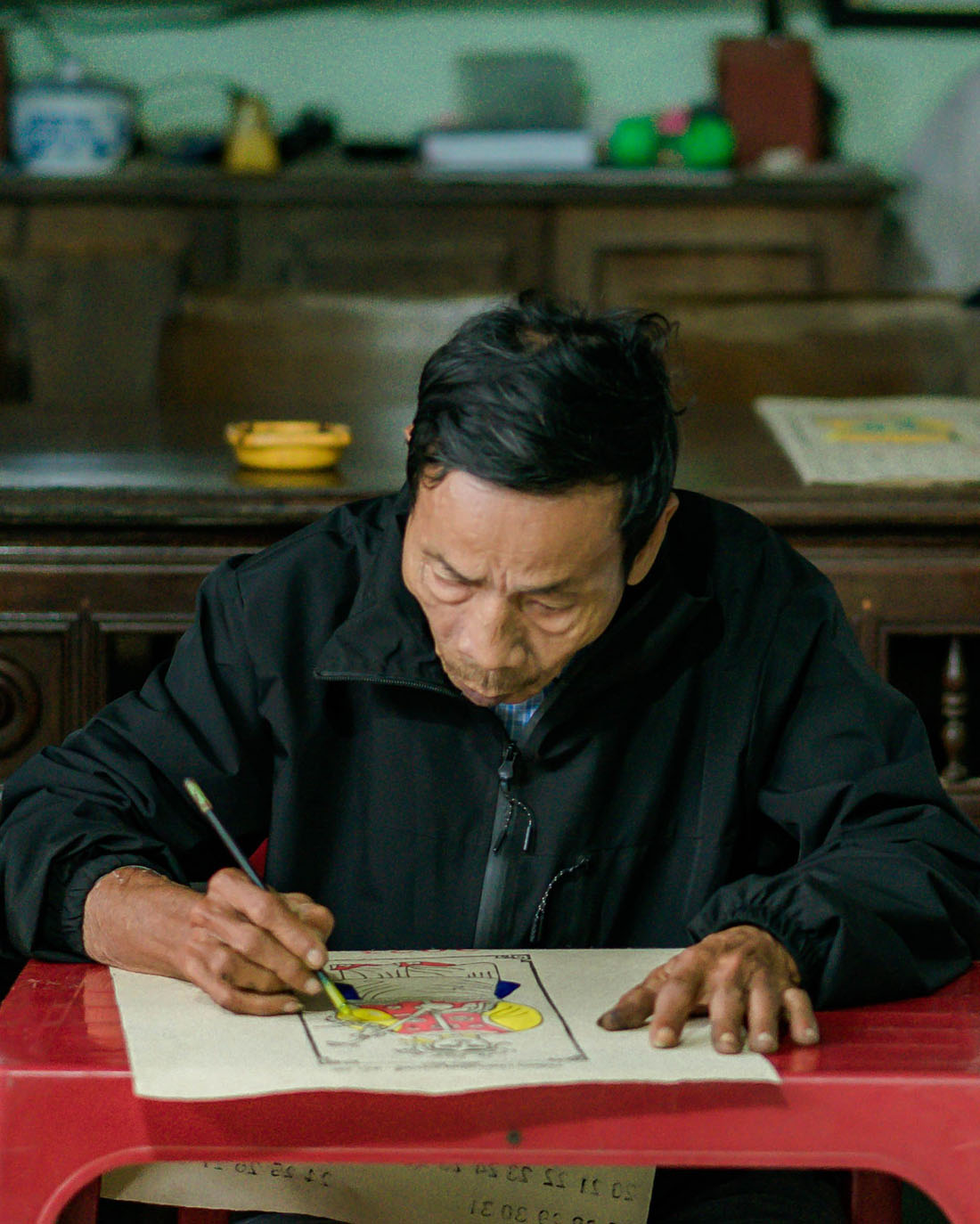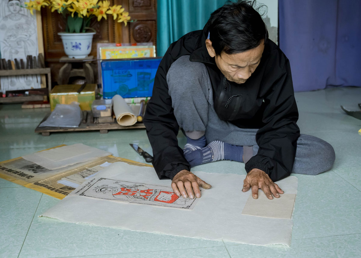 Mỗi lần nhận đặt hàng, nghệ nhân Kỳ Hữu Phước phải làm việc liên tục ngày đêm. Ông cho hay: “Cần sự tĩnh lặng, tập trung làm việc để tô màu đẹp, in tranh chuẩn. Tui làm hết sức chuẩn mực để khách hài lòng. Toàn bộ đều làm thủ công nên mất nhiều thời gian lắm”!