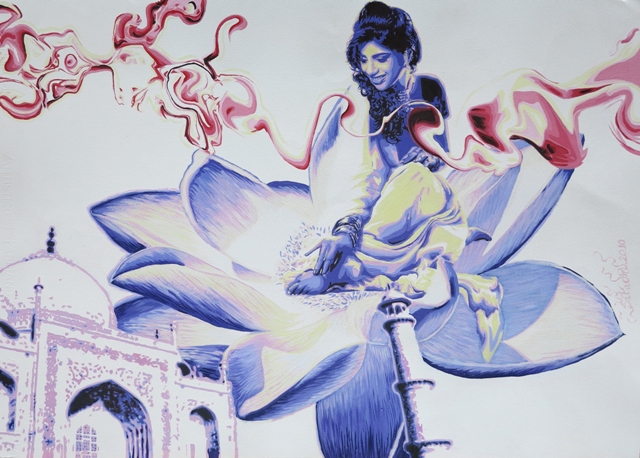 Một trong những tác phẩm hiện đại và giàu chất Ấn của Satadru Sovan Banduri được triển lãm tại Huế.