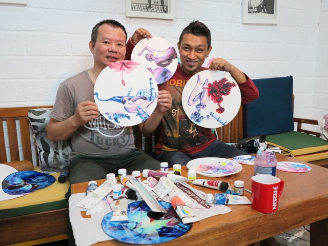 Tác giả Võ Xuân Huy và họa sĩ Satadru (phải) tại NSAF