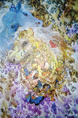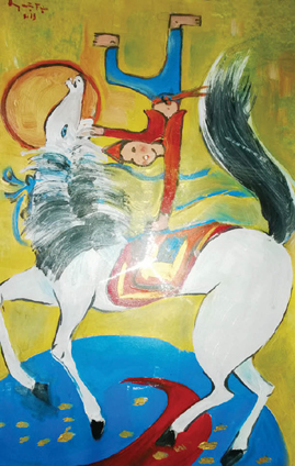 Năm nay, Nguyễn Đình Dàng có 3 bức gồm “Xuân tình”, “Tổ ấm” và “Bay” thu tóm khá trọn vẹn nguyện cầu năm mới của chàng họa sĩ trẻ vừa lập gia đình. Xem tranh, người ta thấy họa sĩ gửi gắm mong ước trong ‘tổ ấm” với ba “khuôn mặt” ngựa mẹ âu yếm ngựa con bên ngựa cha đỉnh đạc trìu mến… “Bay” chính là hạnh phúc tràn đầy và “Xuân tình” là ước muốn bay bổng về tự do của người nghệ sĩ trong anh. Có thể nói những nguyện cầu trước một năm mới của Nguyễn Đình Dàng không che dấu tâm trạng đang ngập tràn hạnh phúc hiện có và hy vọng vào tương lai.