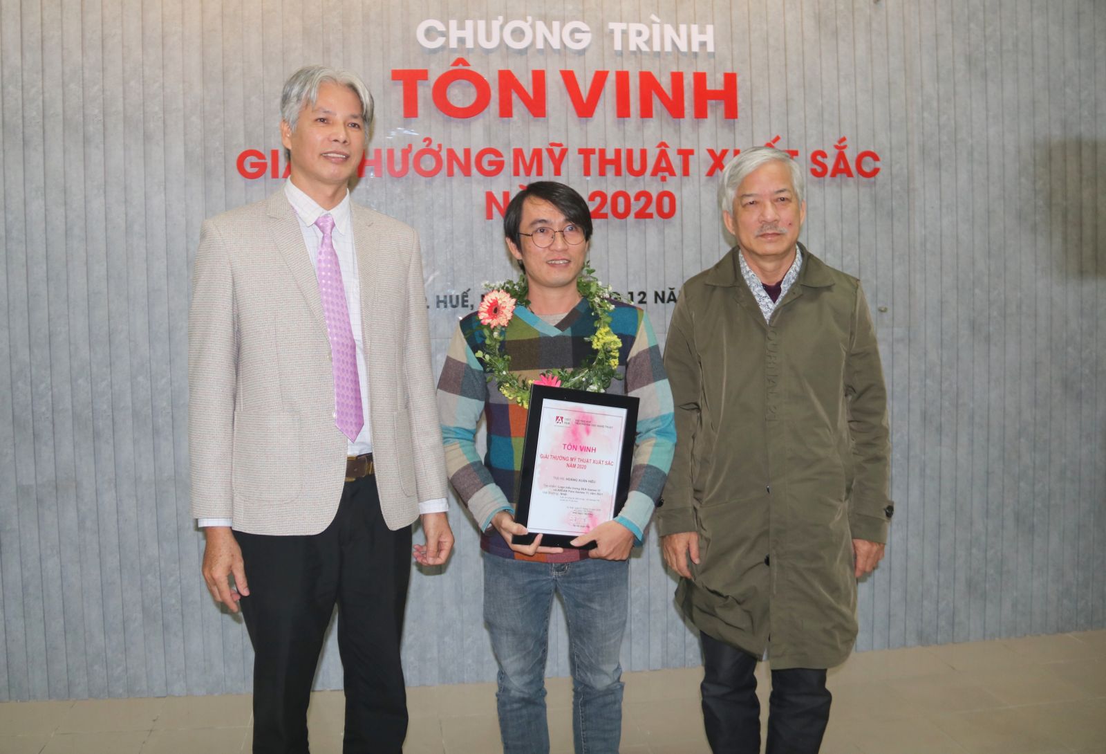Tại buổi lễ, Trường ĐH Nghệ thuật, ĐH Huế chúc mừng và tôn vinh 7 tác giả tiêu biểu, nổi bật đã có thành tích xuất sắc trong năm 2020, đạt nhiều giải thưởng trong các cuộc thi, triển lãm mỹ thuật, trong đó có ThS. hoạ sĩ Hoàng Xuân Hiếu, giảng viên Khoa Sư phạm Mỹ thuật, đạt giải Nhất tại cuộc thi thiết kế lô gô biểu trưng Đại hội thể thao Đông Nam Á lần thứ 31 (SEA Games 31) và Đại hội Thể thao người khuyết tật Đông Nam Á lần thứ 11 (ASEAN Para Games 11) năm 2021 do Ủy ban Olympic Việt Nam và Bộ Văn hoá - Thể thao tổ chức...