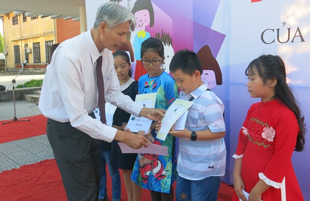 TS. Đỗ Xuân Phú, Phó Hiệu trưởng phụ trách Trường đại học Nghệ thuật trao giải nhất cho các tác giả nhí