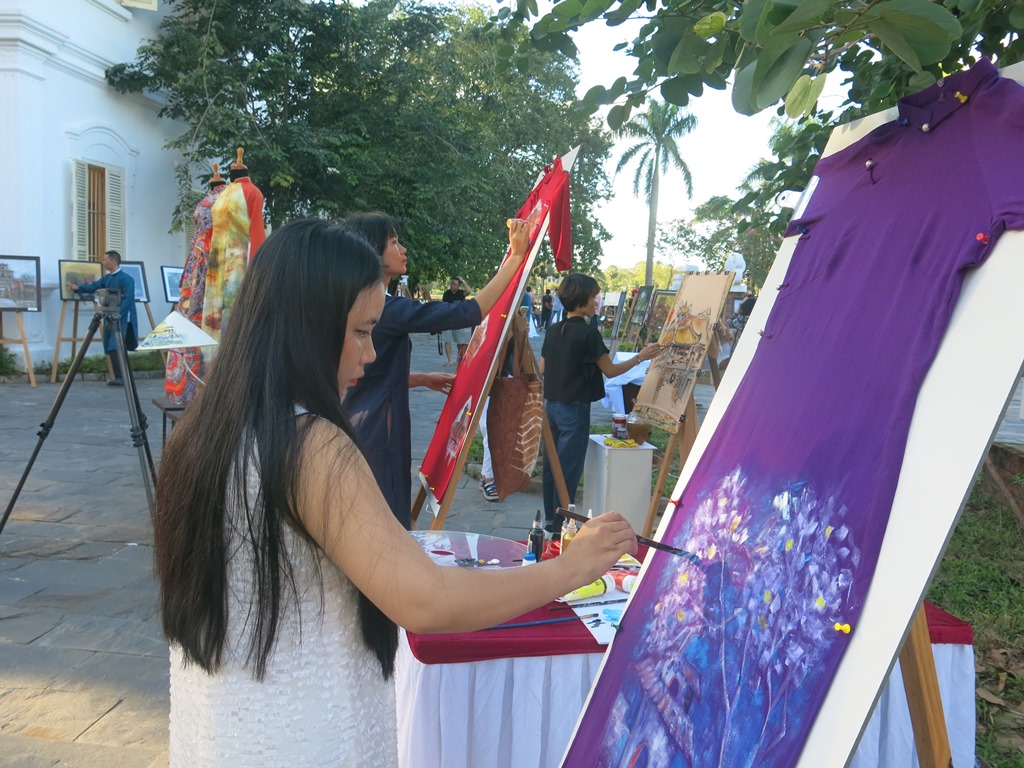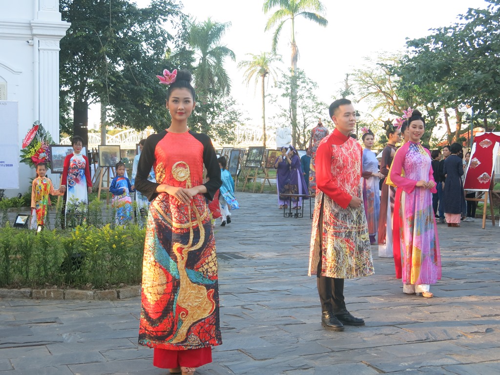 Chương trình còn trình diễn bộ sưu tập “Áo dài với hội họa Huế” của nhà thiết kế Viết Bảo, được lấy cảm hứng từ tác phẩm của họa sĩ Trương Bé, họa sĩ Nguyễn Thị Huệ và các tác phẩm ký họa trong “Ký họa di sản Cố đô Huế 2020”.