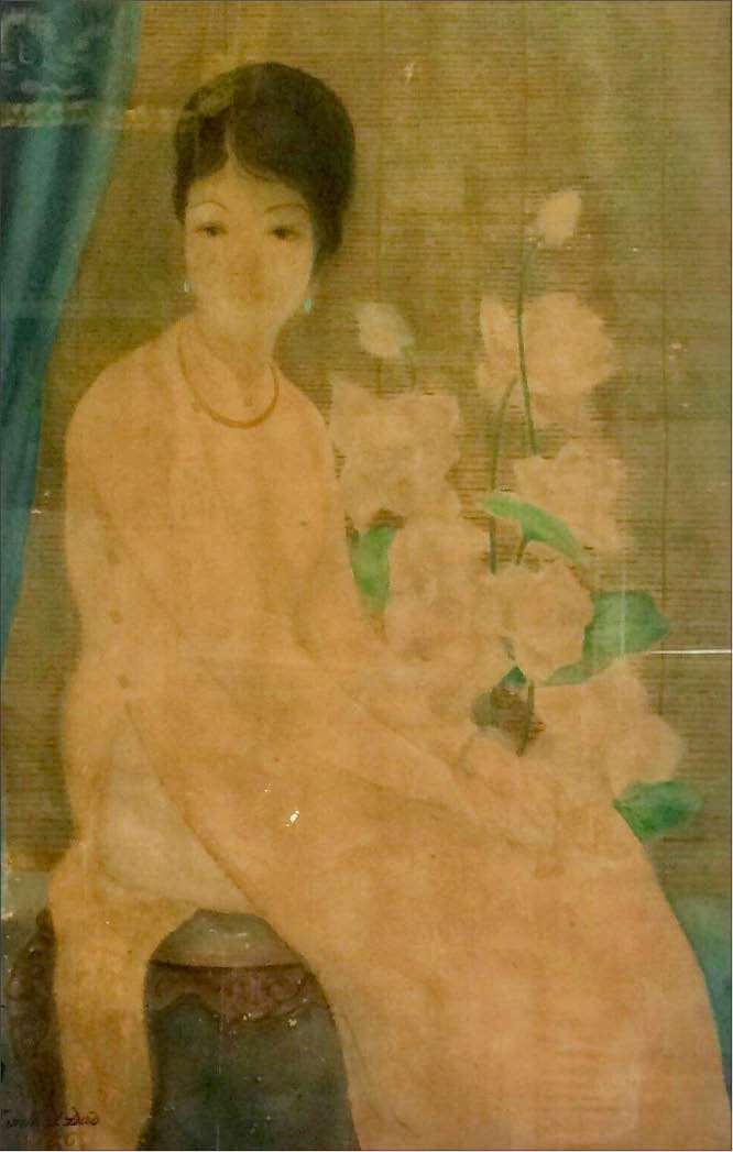 Sinh thời, họa sĩ Tôn Thất Đào say mê sáng tác nhiều bức tranh với đủ các thể loại chất liệu như sơn mài, sơn dầu, lụa. Khi nghiên cứu về hội họa của ông, hình tượng xuyên suốt và chiếm trọng tâm là người phụ nữ. Như trong bức tranh lụa Chân dung thiếu nữ (hình 1), ông vẽ một cô gái mang vẻ đẹp kiêu sa, đài các. Cô ngồi nghiêng với đường cong đầy duyên dáng trong tà áo dài màu vàng nhạt. Khuôn mặt hướng về phía người xem với những đường nét thanh tú: đôi lông mày lá liễu, mũi cao dọc dừa, đôi mắt ẩn chứa một chút buồn. Phía sau nhân vật là rèm, mành tre che nắng, và một bình hoa sen trắng. Hình tượng hoa sen trắng vốn là biểu tượng cho sự thanh cao, đồng thời mang đậm tâm hồn Việt như một sự so sánh ngầm với cô gái ngồi cạnh. Bức tranh mang đậm tinh thần phương Đông. Hòa sắc được họa sĩ sử dụng với hai màu chủ yếu là lam và vàng, đặt cạnh nhau vừa tạo ra sự tương phản nóng lạnh nhưng đồng thời với gam màu nhẹ nhàng vẫn tạo nên sự tinh tế, rung động cho người xem.