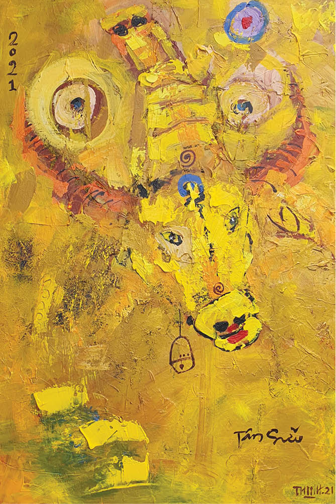 Tôi vừa vẽ xong một bức tranh mới, có tên là “Tân Sửu”, khởi đầu cho một năm “cày bừa” căm cụi như trâu. Một gam vàng tươi tốt của đất đai và cây cỏ, như niềm tin vào thiên nhiên và lao động của con người.