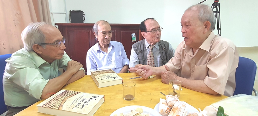 | Thế hệ cựu sinh viên Ban Việt văn-Việt Hán đã ngoài 70, 80 hội ngộ nhân ngày ra mắt sách tại Huế sáng 6/5/2023. Ảnh: MT |