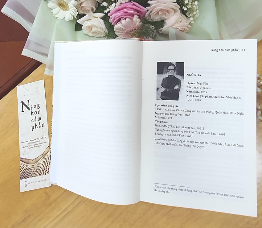 | Với 600 trang viết, “Nặng hơn cầm phấn” trình bày những nhận định, đánh giá về thơ văn của 23 tác giả là cựu sinh viên Ban Việt văn-Việt Hán (nay là Khoa Ngữ văn) của Trường ĐHSP Huế. Ảnh: MT |