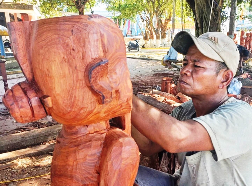 | Nghệ nhân tác nghiệp tại Trại sáng tác điêu khắc truyền thống dân tộc Cơ Tu lần thứ I |