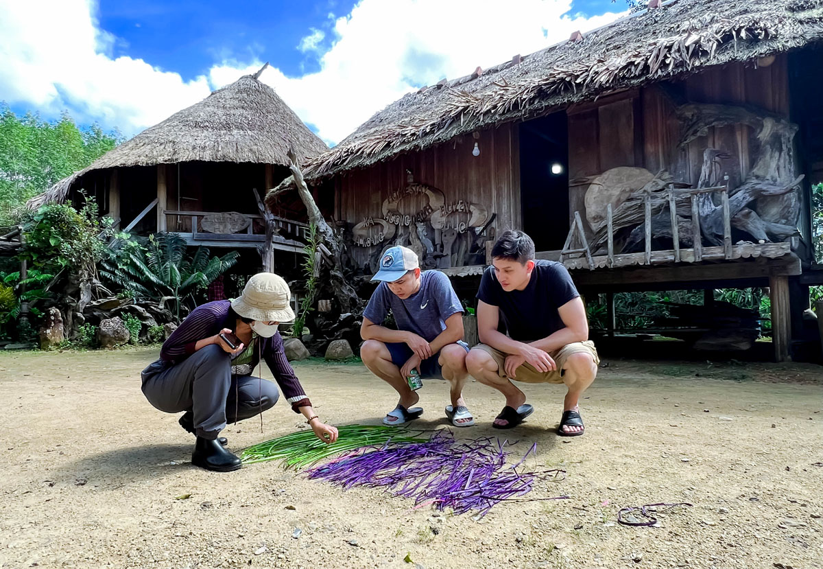 Du khách tìm hiểu quy trình nhuộm, phơi lá