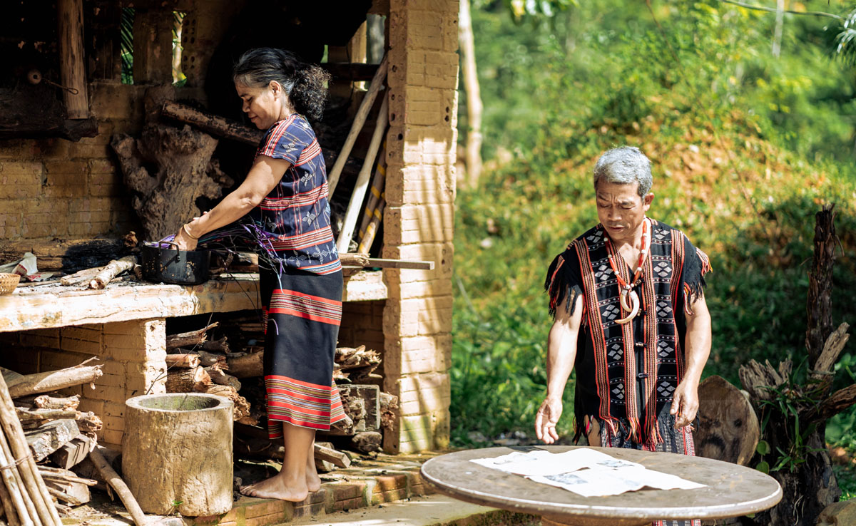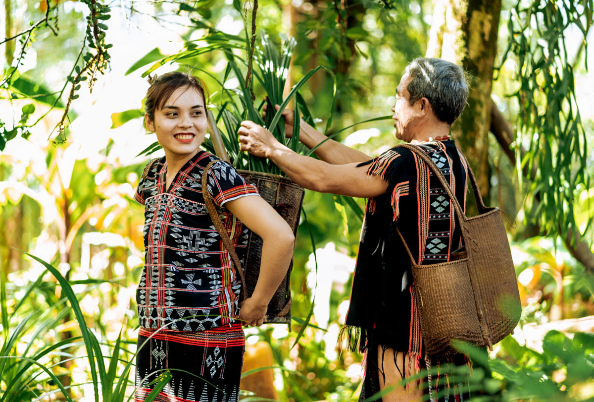 Để lấy được lá A’anh chác – nguyên liệu chính đan chiếu, đồng bào vào rừng sâu từ sáng.