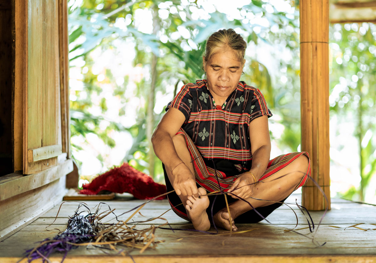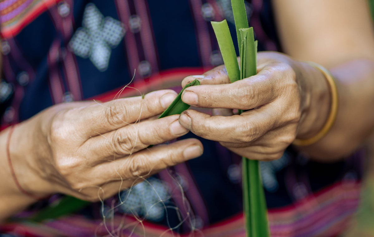 Cùng Thừa Thiên Huế Online xem cách đan chiếu từ lá A’anh chác: