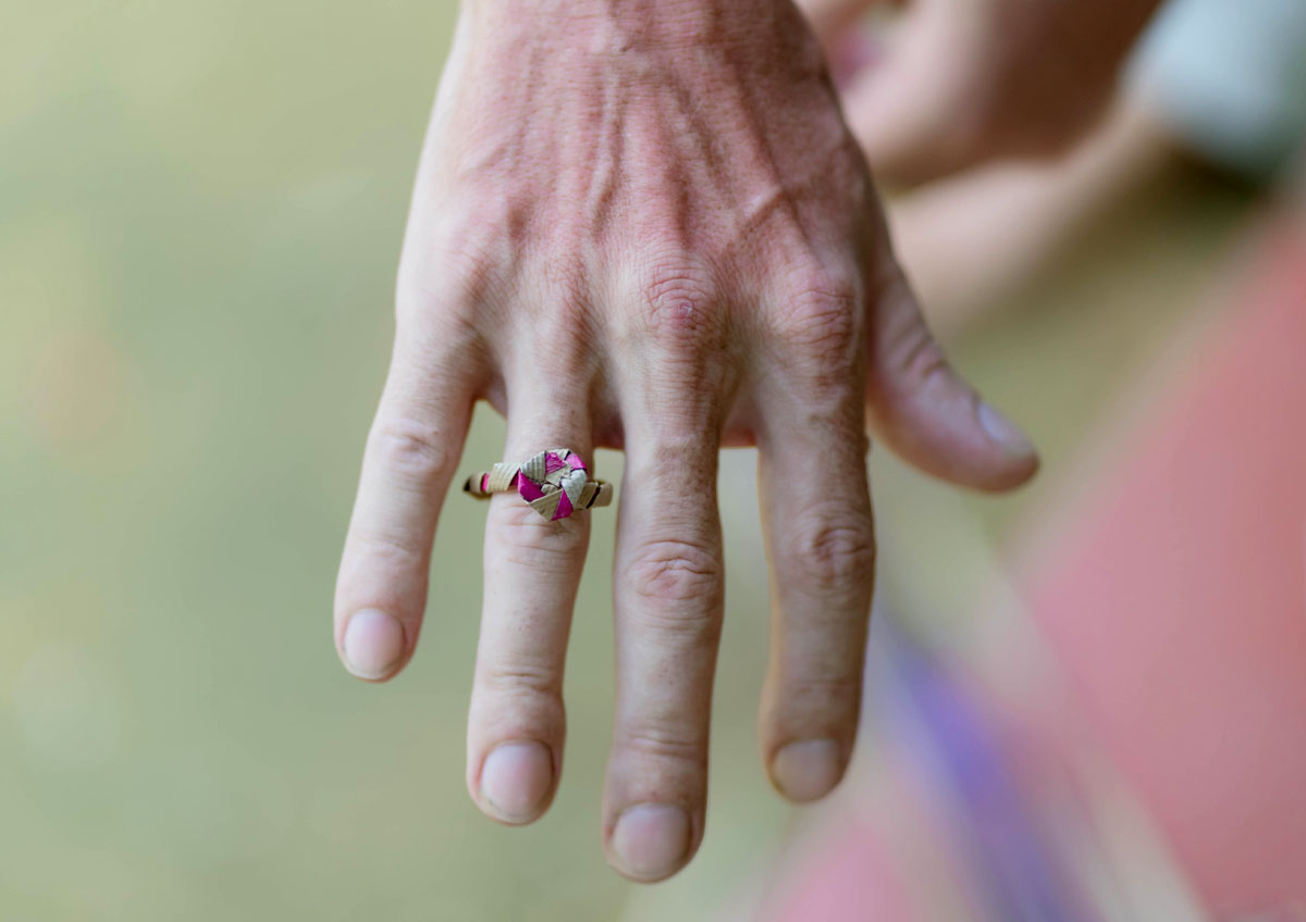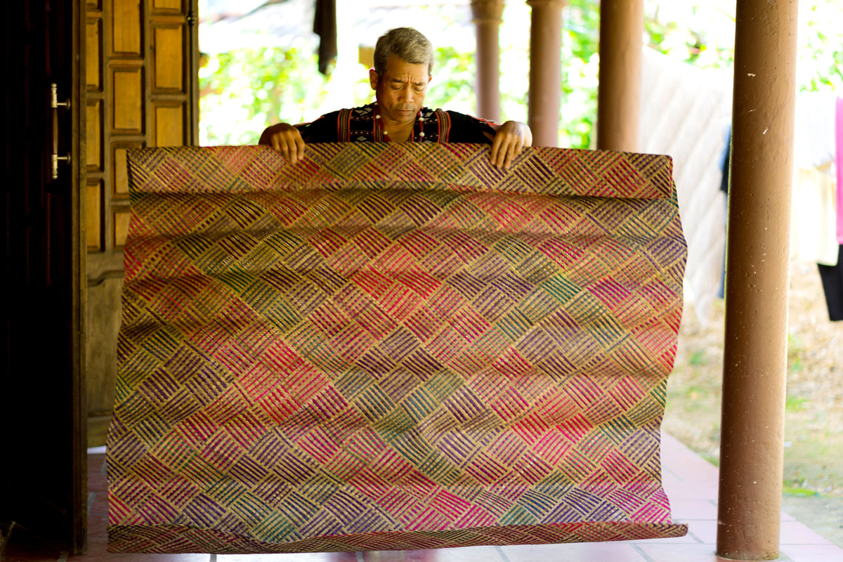 Đan những nút đầu tiên của tấm chiếu sính lễ