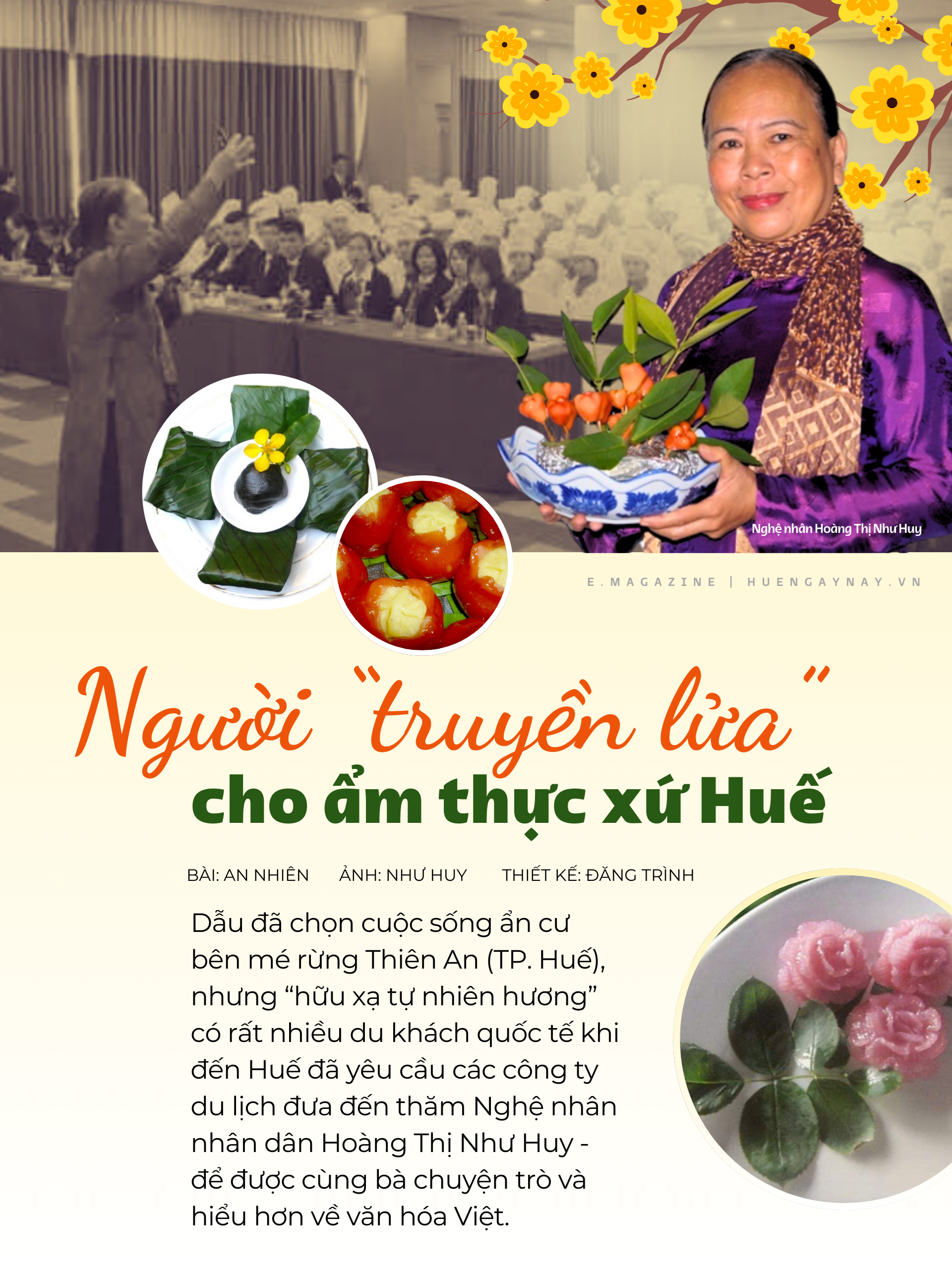 Ở tuổi ngoài 70, đáng lẽ bà Như Huy đã nghỉ ngơi. Vậy nhưng, đêm đêm bà vẫn miệt mài biên tập cuốn sách mang tên “Tình ẩm thực” dày 1.000 trang - cuốn sách như một “bách khoa toàn thư” về ẩm thực xứ Huế độc đáo, cũng là tâm huyết mà bà đang không ngừng nỗ lực để truyền tiếp nghề ẩm thực cho ngày sau.