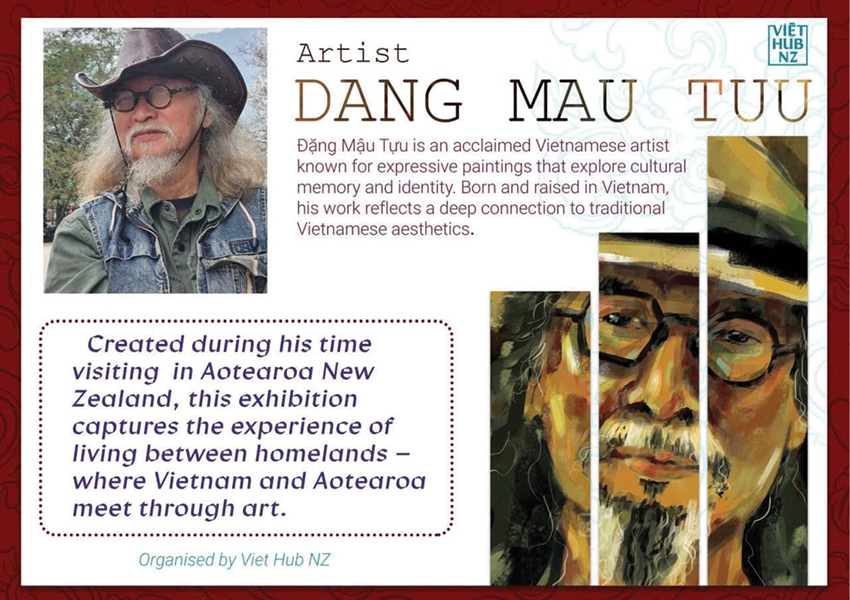Cái duyên lớn là khi gặp chị Vinh Nguyễn, người sáng lập và điều hành Việt Hub NZ - một tổ chức văn hóa phi lợi nhuận, biết họa sĩ Đặng Mậu Tựu vẽ rất nhiều tranh về New Zealand, chị đã tạo điều kiện hết sức để triển lãm “Những miền đất nhớ/Lands We Remember” được tổ chức và khai mạc từ 24/1 và kéo dài đến 7/2/2026 tại Wellington.
