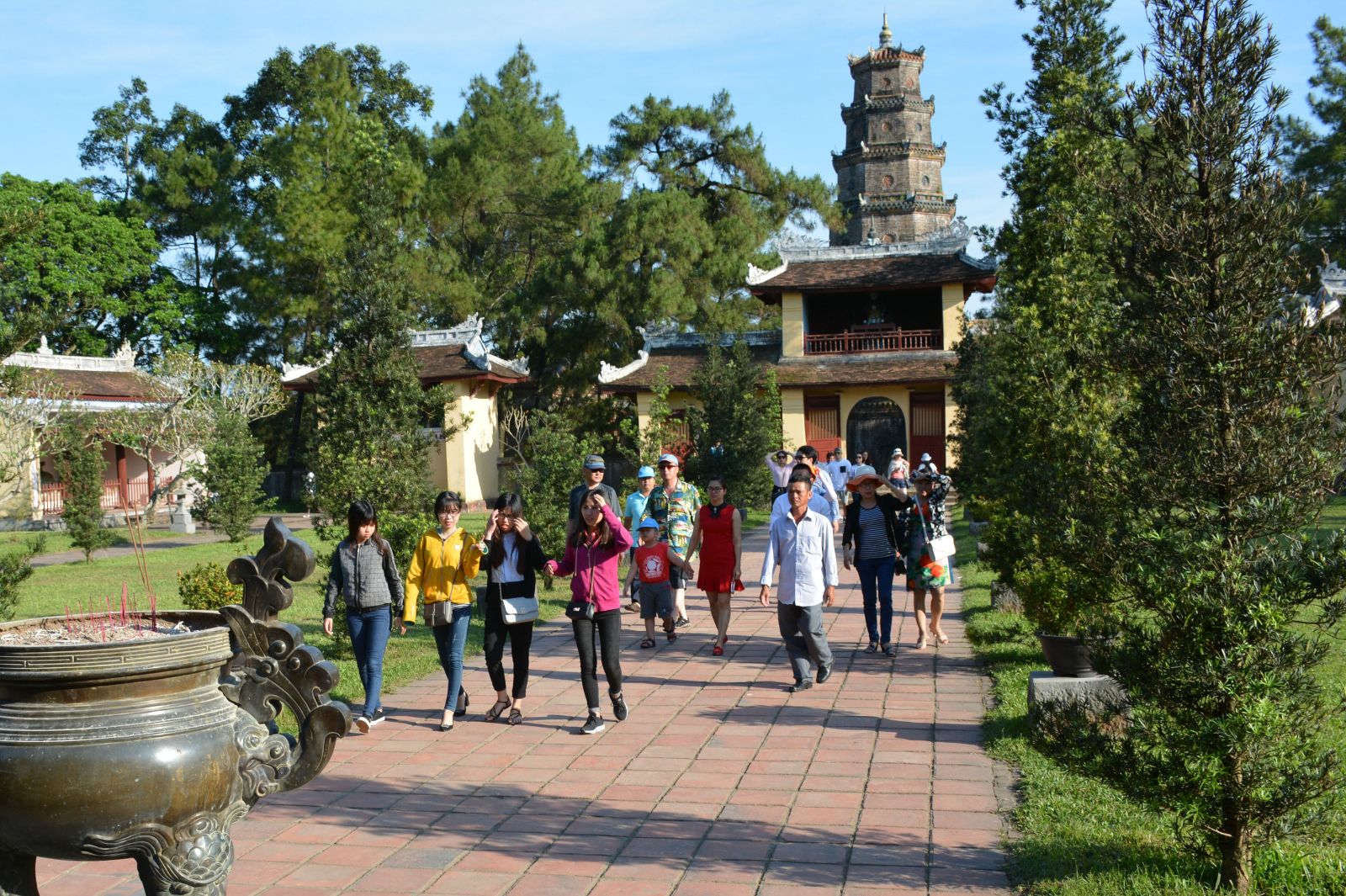 Chùa Thiên Mụ không ngày nào vắng bước chân của phật tử và du khách thập phương tham quan, chiêm bái.
