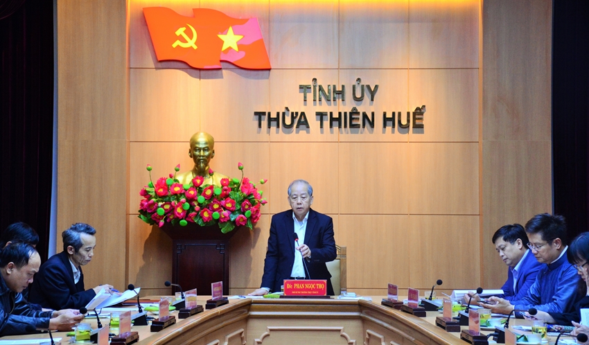 | Phó Bí thư Thường trực Tỉnh ủy Phan Ngọc Thọ phát biểu chỉ đạo tại buổi làm việc |