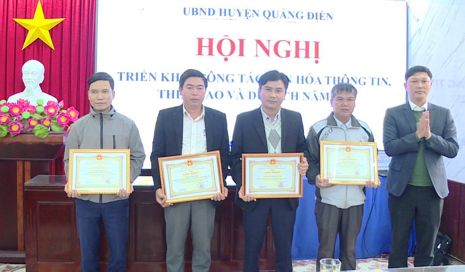 Phó Chủ tịch UBND huyện Quảng Điền Nguyễn Tuấn Anh trao tặng giấy khen cho các tập thể, cá nhân có thành tích xuất sắc trong công tác năm 2022