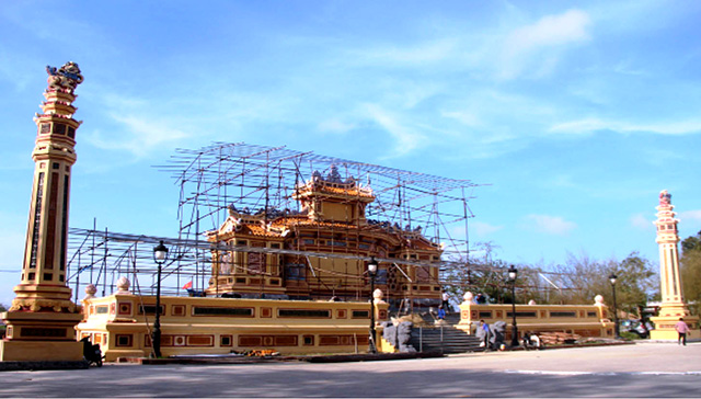 Cùng ngày, qua trao đổi, ông Nguyễn Cẩn, Giám đốc Trung tâm Công viên cây xanh Huế (đơn vị chủ đầu tư) cho hay: “Tôi khẳng định về mặt kiến trúc hoàn toàn không bị phá vỡ, tuyệt đối tuân thủ hoa văn cũ. Hiện nay, dư luận đang nói đến vấn đề màu sắc, chúng tôi sẽ mời hội đồng thẩm định lại trong giai đoạn trước Tết Nguyên đán, sau đó sẽ có phương án tiếp theo”.