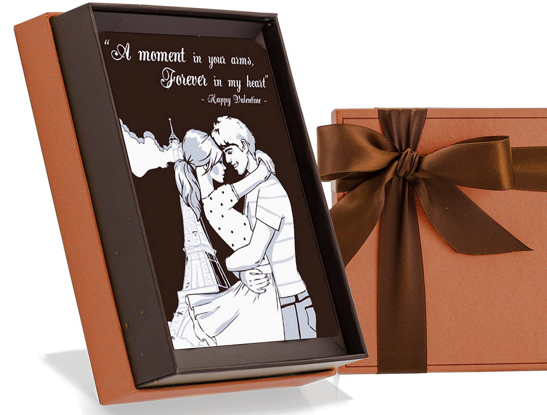 Bên cạnh những mẫu socola có thông điệp tình yêu in sẵn, khách hàng cũng có thể yêu cầu in bất cứ câu nói nào mình muốn gửi gắm hoặc hình ảnh mình muốn lên thanh socola để gửi tặng người yêu, chẳng hạn như hình ảnh của chính mình hay hình hai người chụp chung ở một nơi đầy kỷ niệm.