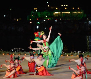Điểm xuyết là những vũ điệu uyển chuyển nhưng không kém phần mạnh mẽ, những điệu nhảy sôi động của các đoàn nghệ thuật: PA Talents – Singapore, Bayanihan – Philippines, Artistana – Malaysia trên nền nhạc sôi động, “thiết đãi” du khách thêm những “món ngon” đa sắc màu văn hóa. Dễ thương nhất là các nghệ sĩ Philippines đã hát tặng khán giả bài hát dân ca miền Trung bằng tiếng Việt bập bẹ. Dẫu chưa rõ lời nhưng đó là tình cảm thân thương mà họ dành tặng Việt Nam, dành tặng Huế. Rồi vũ khúc “Hội ngộ ASEAN” đưa khán giả phiêu lãng qua các miền văn hóa của khu vực bằng âm nhạc, vũ điệu, trang phục...