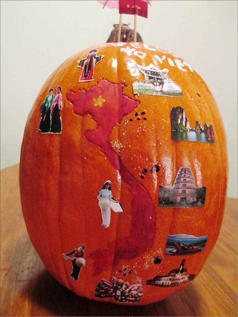 Mới mong muốn quảng bá được thật nhiều hình ảnh đất nước trong khả năng có thể, tôi khắc bản đồ Việt Nam với các hình ảnh du lịch ba miền đại diện và cả đảo Hoàng Sa – Trường Sa lên quả bí ngô trong cuộc thi khắc tỉa bí ngô nhân dịp Halloween do một công ty du lịch ở Mỹ tổ chức. Dù không phải là quả bí đẹp nhất nhưng chắc hẳn nhiều thực khách đến xem cũng biết nhiều hơn về Việt Nam thân yêu.