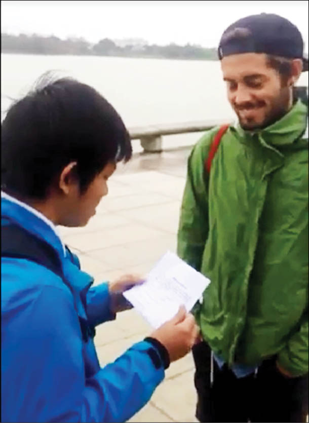 -Jonathan: “Tôi không chắc lắm. Có lẽ nếu có cơ hội tôi sẽ lại đến Huế khi tôi học xong đại học.”