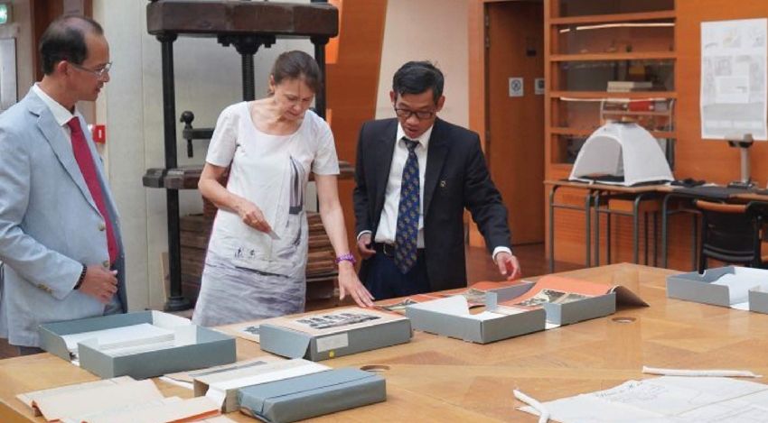 | Đoàn công tác của TP. Huế tìm kiếm tư liệu Triều Nguyễn tại Pháp. Ảnh: TTBTDTCĐ Huế |