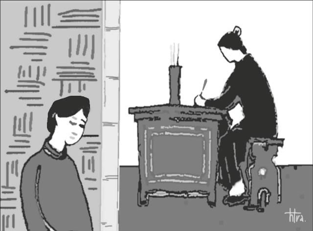 - Em cảm qua loa thôi. Thời tiết đấy. Mơ rót nước mời chị dâu uống, không giấu được tiếng thở dài.