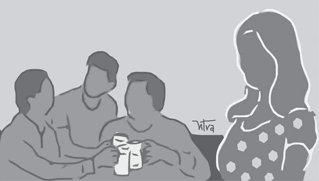 Anh ít bạn. Trong khi vô số bà vợ chê chồng đắm chìm trong men say rồi sinh chuyện này nọ thì chị lại thắc mắc sao anh ít nhậu. Đã thế, các nhà hàng xóm hay tụ tập lai rai, cứ như kích thích ước muốn ngược đời của chị: “Nhậu tưng tưng rồi chuyện trò rôm rả, cũng vui”. Anh vặn lại: “Rượu vào lời ra, có khi đám ma xuất hiện, hay ho gì mà ham!?”. Chị cười: “Sao bi kịch hóa kinh thế”. Chiều chiều, thấy mấy ông bên cạnh xúm lại cái bàn đá trên lề đường làm vài chai bia với nhúm đậu phụng rang là anh lẩn vào trong nhà. Lúc đầu họ hay rủ nhưng người được mời khoát tay; sau thì họ chẳng khách sáo, lại còn bảo: “Chả có uống đâu mà mời”.