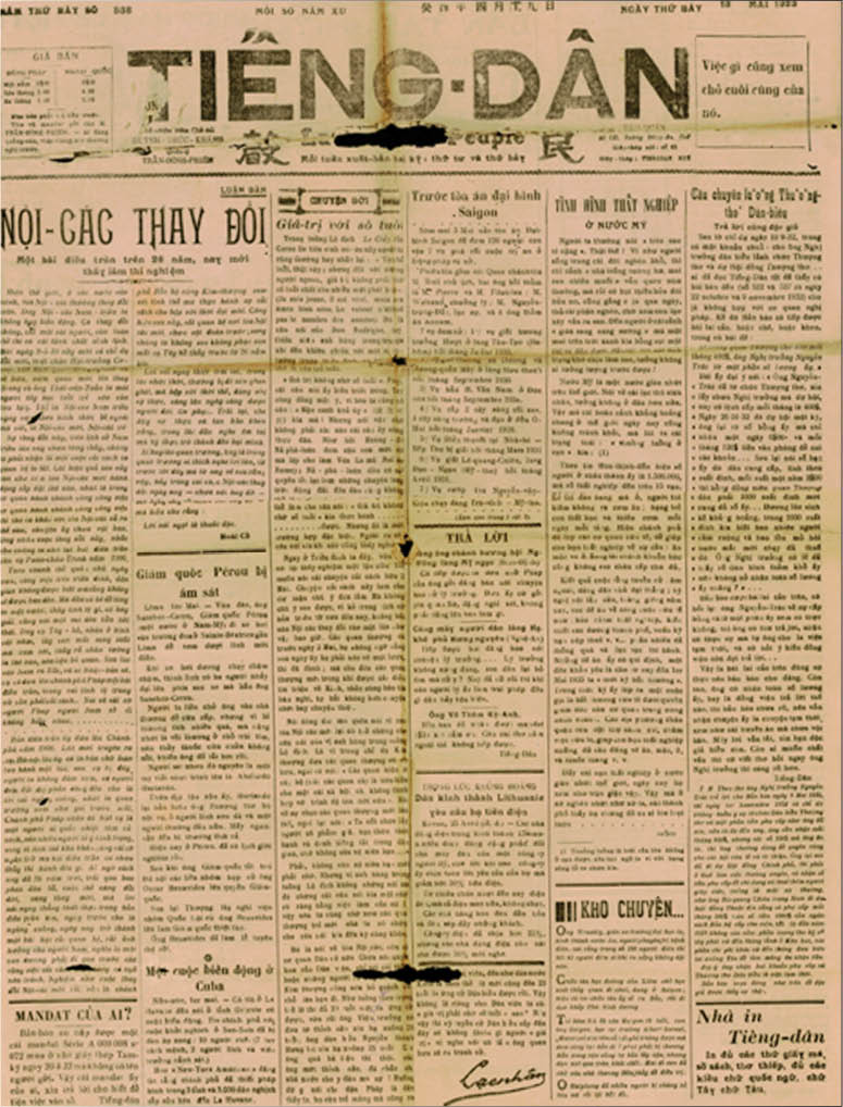 Chính vì mục tiêu cao cả vì dân theo hướng chấn hưng đất nước đó của Tiếng Dân mà người Pháp luôn kiểm soát gắt gao. Hơn nữa, Tòa soạn Tiếng Dân còn chịu sự quản lý trực tiếp, lưu trữ và theo dõi sát sao của Sở Liêm phóng (phụ trách thông tin báo chí). Kế hoạch kiểm soát Tiếng Dân của Giám đốc sở Liêm phóng Trung kỳ L. Sogny (tháng 3/1927) đã cho lập hẳn một ban kiểm soát gồm Bùi Văn Cung, thư ký Đoàn Nẫm (người của Pháp tại Bộ Lại) và Đặng Thái Vận (nhân viên Sở Liêm phóng). Tiếng Dân không được xúc phạm tới chính trị Pháp - Nam. Trong quy trình kiểm duyệt, Tòa soạn phải nộp hai bản vỗ (bản nộp đầu tiên- NV) cho Sở Liêm phóng cùng bản dịch tiếng Pháp, duyệt xong sẽ trả lại một bản, được ký, đóng dấu và Visa pour publication (Được ấn hành). Sau khi báo ấn hành, phải nộp lưu chiểu ở hai kho lưu trữ của Tòa Khâm sứ và cảnh sát.