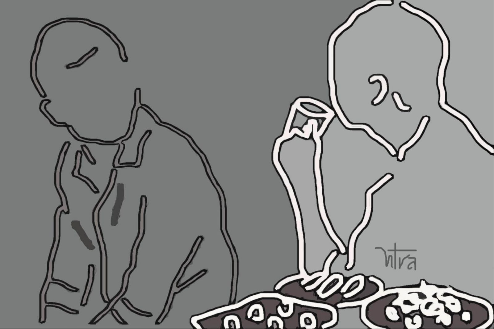 Trong tiệm cà phê, một người mẹ đang ngồi bên chiếc máy tính bảng, đút từng thìa cháo cho cô con gái tầm ba tuổi. Dường như cô bé không mấy ngon miệng, miếng cháo cứ ngậm hoài không chịu nuốt. Người mẹ trẻ chăm chú nhìn vào màn hình, thỉnh thoảng ngước lên nhìn thoáng qua đứa con, rồi lại tiếp tục cúi xuống màn hình đầy ma lực.