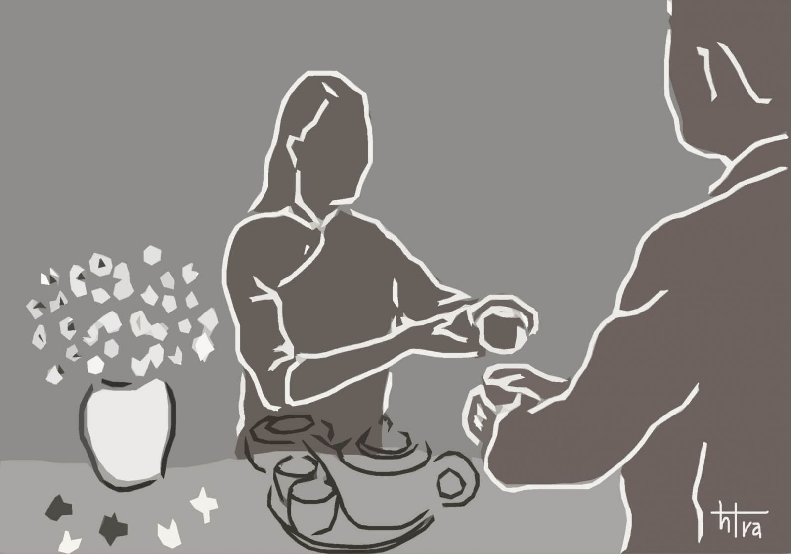 - Anh nghĩ, mình sẽ sống những năm tháng nghỉ hưu ở tuổi ba lăm này. Với đồng lúa, cỏ xanh, với em và cốc trà này nữa nhỉ. Mà hoa này là hoa gì?