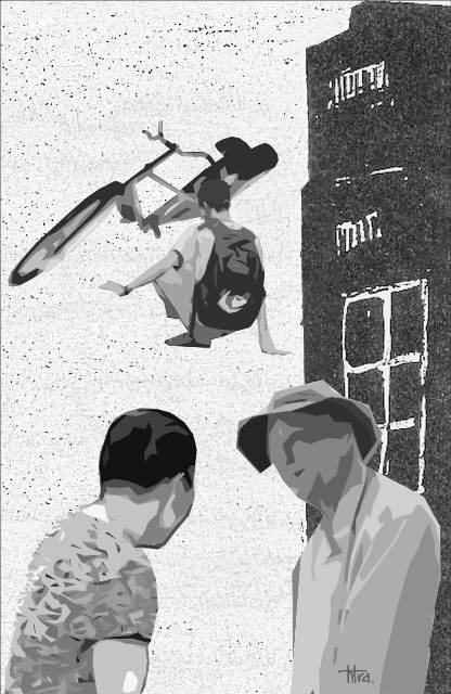 Trên đường về, ông nhận điện thoại từ trạm y tế phường, lúc đầu tưởng nhầm nhưng không. Nghe giọng gấp gáp của người gọi, ông linh cảm chuyện chẳng lành. Vừa bước vào phòng khám của trạm y tế, ông khựng lại, chân tay bủn rủn khi thấy con trai nhăn nhó với xây xước đầy người, áo quần xộc xệch. Thoáng thấy ba, thằng bé khẽ kêu lên, ngước nhìn bằng đôi mắt ngấn nước. Cạnh đó, người phụ nữ lắm lời ở trọ gần nhà cũng mặt sưng, tay trái băng trắng toát. Hốt hoảng nhìn xe đạp của con bẹp dúm ở góc sân, ông nghĩ ngay đến tai nạn. Lờ mờ đoán căn nguyên sự vụ và cả thủ phạm, ông nhìn thẳng mặt người láng giềng, lớn tiếng: “Chị đã làm gì thằng bé!?”. Đáp lại vẻ hằm hằm của ông, chị xua tay lắc đầu, ú ớ không cất nên lời bởi môi sưng vù. Anh bác sĩ đang băng vết thương cho chị dừng tay, nhìn ông, nghiêm giọng: “Anh phải cảm ơn chị ấy!”. Ông ngơ ngác…