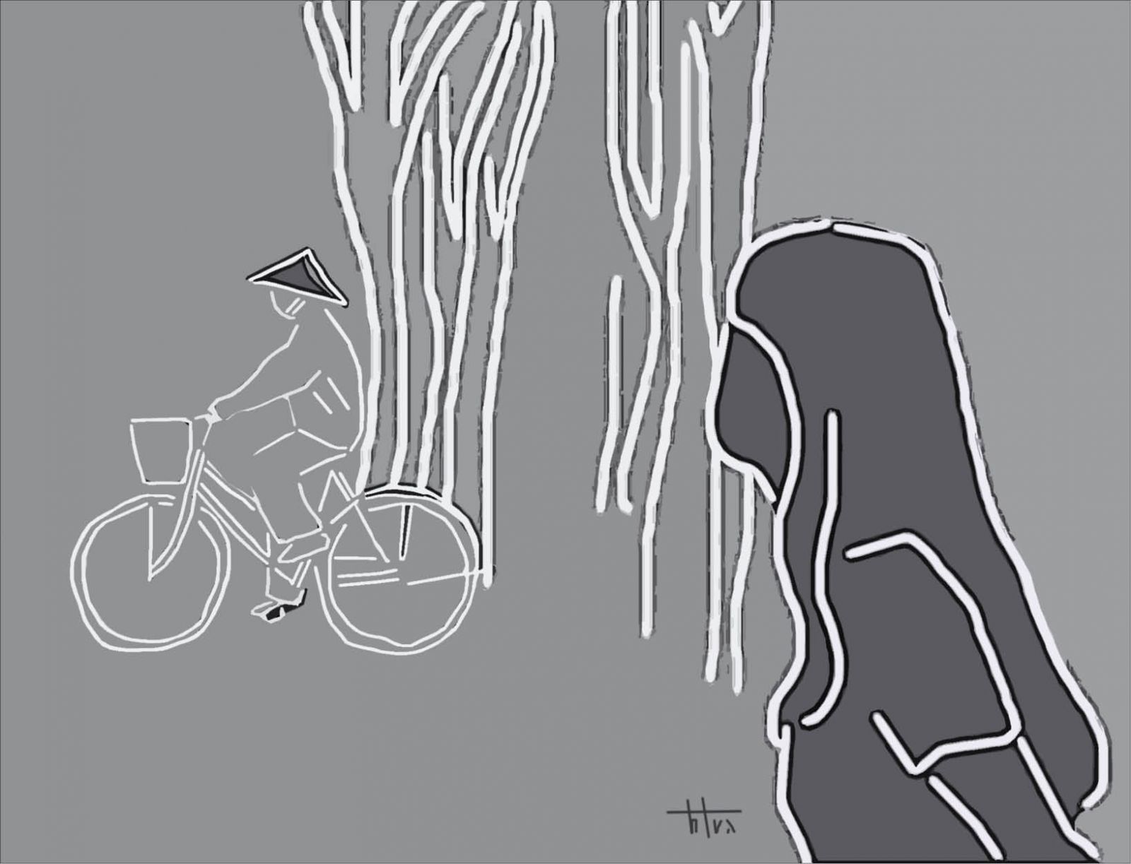 Mỗi lần bà ra về, cô lại đứng bên cửa nhìn theo cho đến khi cái dáng mảnh khảnh trên xe đạp khuất dần trong dòng người trên đường. Bất chợt liên tưởng đến những lứa đôi đâu đó “dứt tình” bằng lưỡi lam, a-xít hay những lít xăng cùng ngọn lửa man rợ, cô lại rùng mình. Rất may những chuyện bi thảm chỉ thoáng qua còn hình bóng người đàn bà lóc cóc đạp xe vào viện chăm sóc chồng cũ cứ khắc mãi trong cô và gợi lên bao tin yêu.