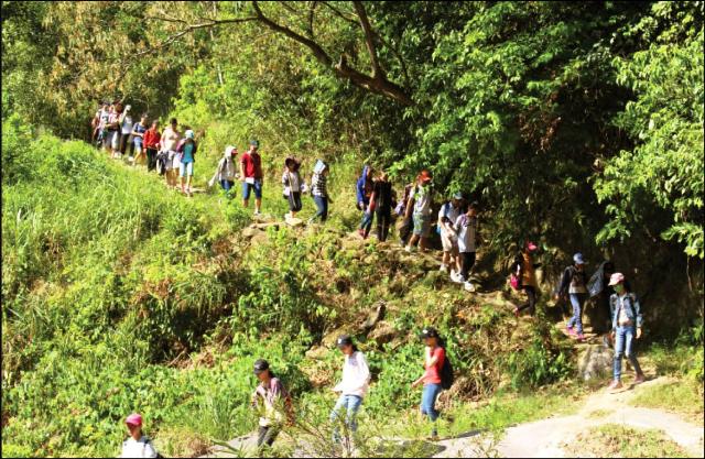 Một chuyến điền dã của các nhà thơ, nhà văn trẻ tại thác Bàu Ghè (Phú Lộc). Ảnh: Đông Hà