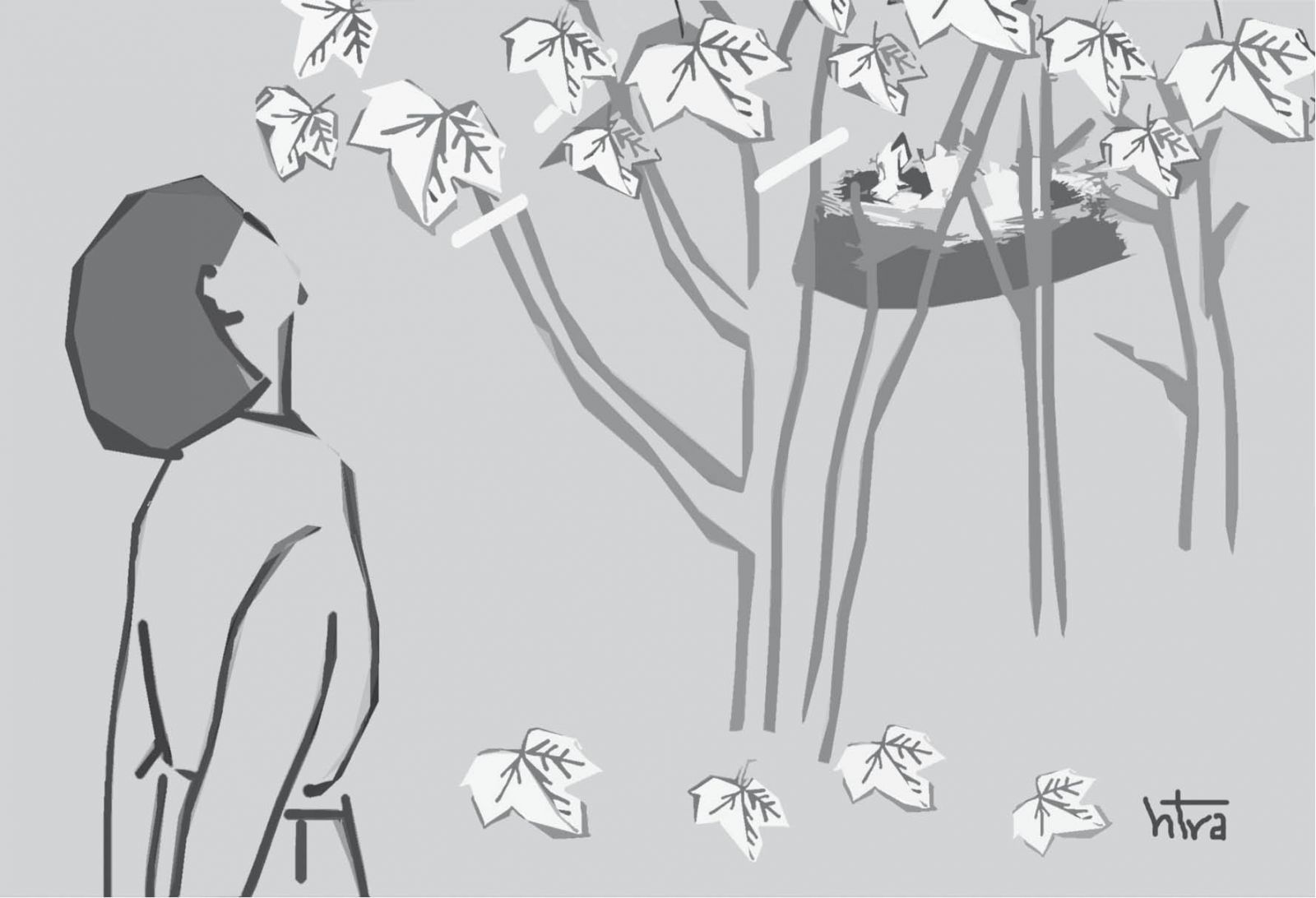 “Bên cạnh còn chiếc tổ cũ, sao chúng không vào đẻ trứng trong đó luôn cho khỏe má nhỉ? Vậy có phải đỡ vất vả hơn không?”. “Chăm chút chiếc tổ để đẻ con mình mà cũng lười?”. Má ngoái đầu nhìn Khiêm, bĩu môi “xùy” một tiếng. Má chỉ tổ chim rồi nói với Khiêm, “đến chim cũng biết về đây làm tổ, đẻ con? Mà sao cô mãi chưa chịu lấy chồng thế hả?”.“Lấy chồng cũng phải từ từ nha má. Phải lựa kỹ mới được. Chớ lỡ lấy nhầm mệt lắm á. Qua sông qua đò nhiều lần không tốt đâu. Con bị say sóng”. Nghe tiếng con gái cà khịa, bà Minh chỉ biết lắc đầu bỏ vào nhà.