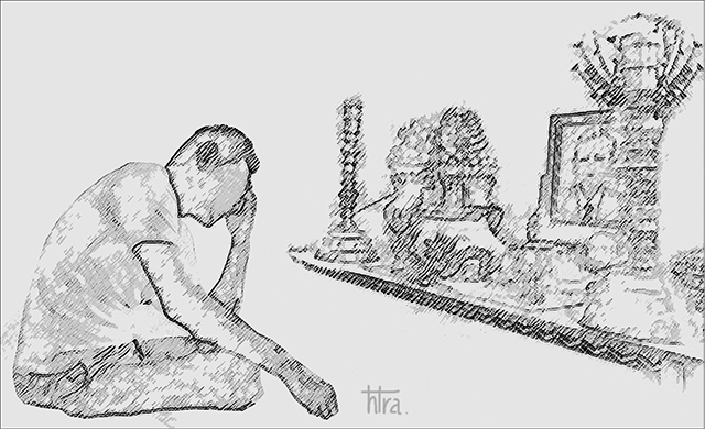 Anh cả nghe xong câu chuyện, lặng lẽ qùy sụp trước bàn chờ cha nghi ngút khói. Quỳ rất lâu. Không biết anh khấn nguyện điều gì. Rồi anh lẳng lặng ra vườn, ngước lên cây mít cổ thụ lủng lẳng bao nhiêu là qủa. Gương mặt anh giàn giụa. Nước mắt chảy tràn, ướt cả cổ áo…
