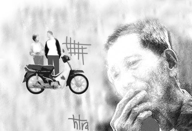 Ông gật đầu như vô thức, người ngay đơ, lập bập không cất nên lời. Ông đứng lặng nhìn theo cho đến khi bóng dáng quen thuộc ấy hòa vào dòng người hối hả trước cổng bệnh viện. Bất chợt ông cúi xuống nhìn bộ đồ bệnh nhân của mình, mắt ứa lệ.