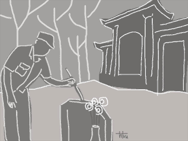 Cuối cùng thì nghĩa trang liệt sĩ của xã cũng bắt đầu đi vào sửa sang. Tấm lòng của ông dành cho những đồng đội đã hy sinh khiến ai nấy đều cảm động. Nhiều nhà có điều kiện bảo nhau đóng góp ít nhiều. Con cháu ở xa cũng gửi về chút tấm lòng thơm thảo. Nhờ thế mà gần hai trăm bia mộ và toàn bộ khuôn viên nghĩa trang đều được ốp gạch sạch sẽ, hệ thống thoát nước cũng được chú trọng để chống ngập úng. Số tiền còn lại lãnh đạo xã lập ra một quỹ riêng dành mua hoa quả, hương nhang thắp hương vào những ngày lễ tết. Nhiều cây xanh, và các loại giống hoa cũng được mua về trồng xung quang khuôn viên. Thỉnh thoảng lúc đi làm về ông rẽ vào tưới từng khóm hoa, chăm bẵm từng mầm cây mới nhú. Ông ngồi đó nghe rì rào gió bên tai, mường tượng ra cảnh một ngày không xa cả nghĩa trang sẽ tràn ngập lá hoa, ong bướm rập rờn, những chú chim rủ nhau về nhí nhách. Ý nghĩ ấy khiến ông thấy lòng xôn xao quá…