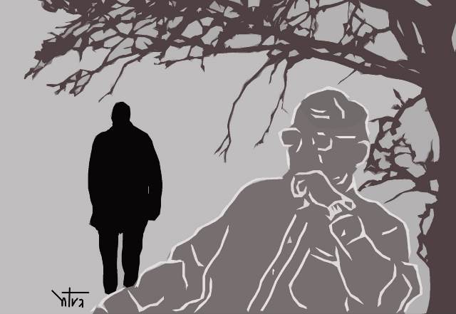 Võ Thạch bất ngờ nóng mặt, cảm thấy bị xúc phạm; lại cay đắng nhớ những câu cửa miệng “tiền phong gương mẫu” hay “mình vì mọi người” mà Lê Hòa từng cao giọng với đồng nghiệp. Anh nhìn người đối thoại, buồn rầu: “Anh cứ như phân thân, tuy một nhưng hai. Lẽ nào người ngồi đây mới là thật, còn tấm gương điển hình của cơ quan ngày nào thì ngược lại?”.