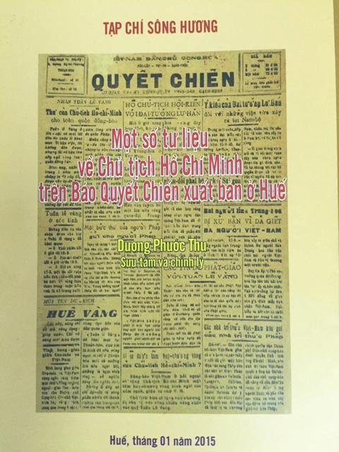 (1) Một số tư liệu về Chủ tịch Hồ Chí Minh trên báo Quyết Chiến xuất bản ở Huế, tháng 1 năm 2015, tr 9.