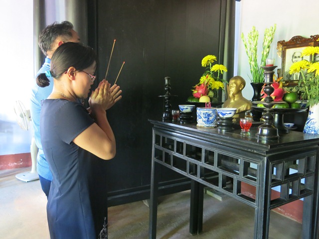 Ngôi nhà 112 Mai Thúc Loan thời điểm chúng tôi đến, du khách liên tục vào ra. Có người từ Bắc vào, miền Nam ra, có khách tận nước Đức, Úc và Hồng Kông xa xôi. Đến Huế du lịch vào dịp Quốc khánh, họ đến đây để dâng lên nén hương bày tỏ lòng ngưỡng vọng một vị lãnh tụ được vinh danh là danh nhân văn hóa thế giới. Trước khi vào tham quan Đại Nội, gia đình chị Hòa (ở Hà Nội) ghé nơi đây kính cẩn thắp nhang lên bàn thờ Bác. Chị Hòa kể, cứ đến ngày Quốc khánh và sinh nhật Bác, vợ chồng chị đều đến viếng lăng Bác ở Hà Nội. Dịp này vào Huế, chị tìm đến đây để tỏ lòng thành. Thật không thể cầm được nước mắt trước những kỷ vật và câu chuyện về Bác ở nơi đây.