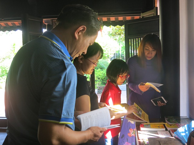 Hai vị khách Hồng Kông tham quan Nhà lưu niệm Chủ tịch Hồ Chí Minh ở 112 Mai Thúc Loan, TP. Huế