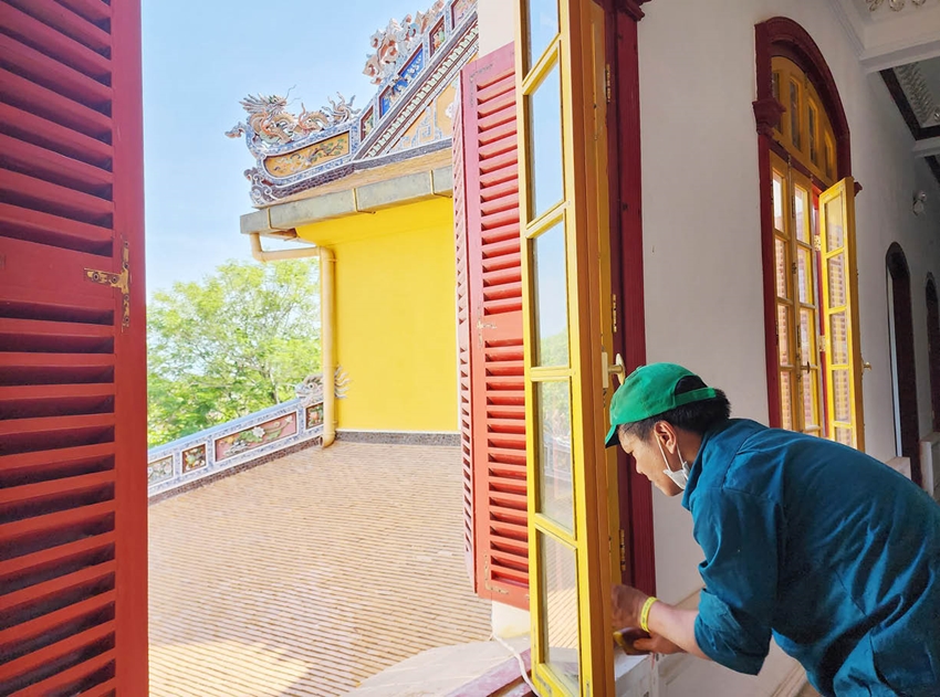 | Thợ thủ công thi công tỉ mỉ tại công trình di tích |